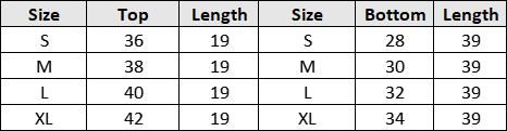 Size (Inches): Bottom: S-28, M-30, L-32, XL-34